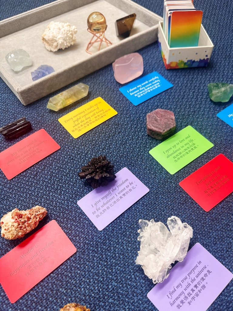 來一趟開心的探索原礦行程 水晶原礦 玩甚麼 先挑選合眼緣的晶礦 認識晶礦 了解晶礦特質 和晶礦聊個天 解讀晶礦訊息 可以自己設計手鍊 幫平時戴的手鍊換線 還可以體驗水晶缽療癒 感受頌缽帶來的平靜 讓手鍊休息充個電 我們還有各種卡牌 您可以自在的玩卡牌 試試擺水晶陣 我們為您圓滿送禮的心意 帶著滿滿的能量♥️
