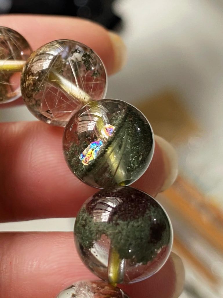 水晶來到工作室受到淨化及充電的洗禮後看到彩虹已經非常習以為常了,但是連手珠都爆出了一片彩!真的是電力十足啊美美